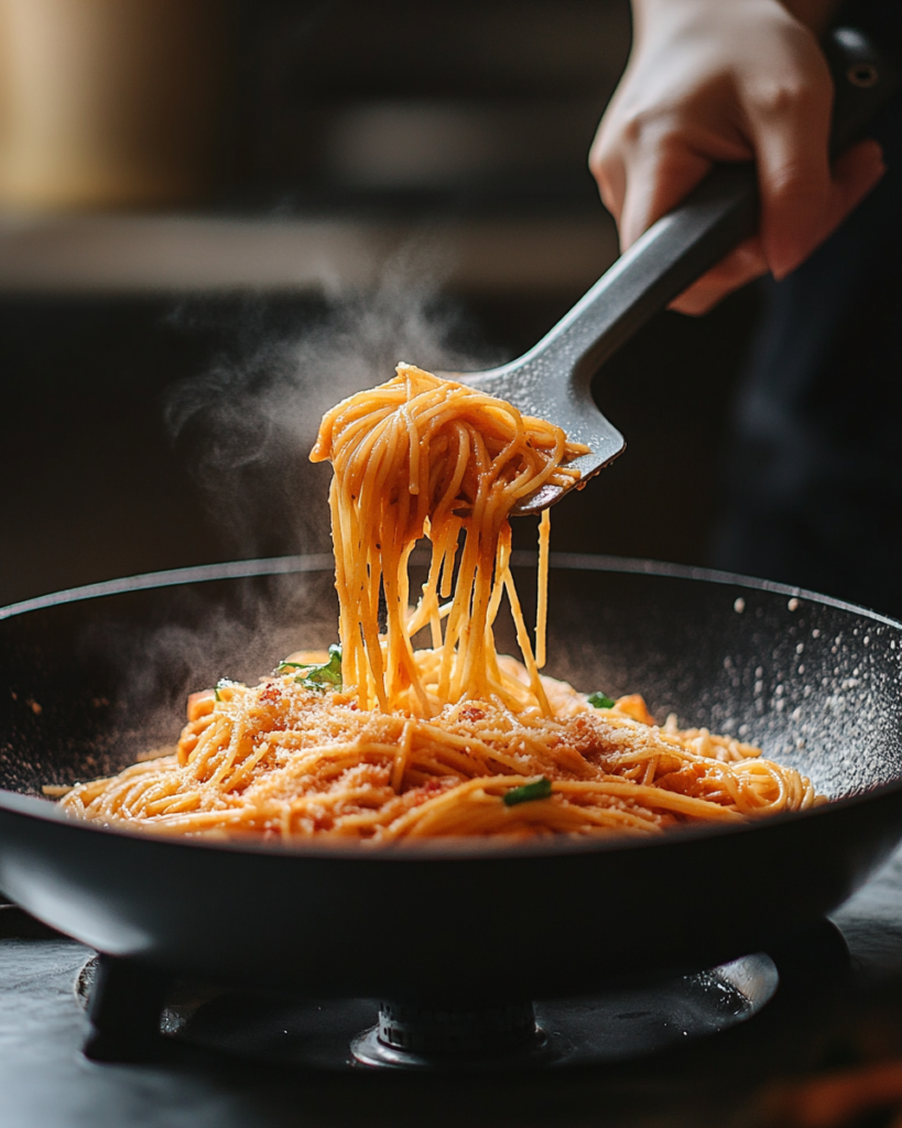 Vegetables can be added easily. Diced bell peppers, mushrooms, or zucchini blend well with the sauce and increase the nutritional value without changing the core flavor.