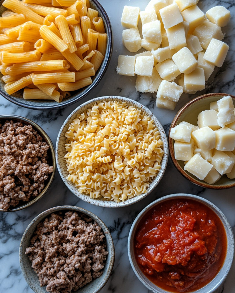 If needed, substitutions are simple. Ground turkey can replace beef for a lighter option. Gluten-free pasta works well without changing the structure. Dairy-free cheese alternatives can also be used, though the melt may differ slightly.