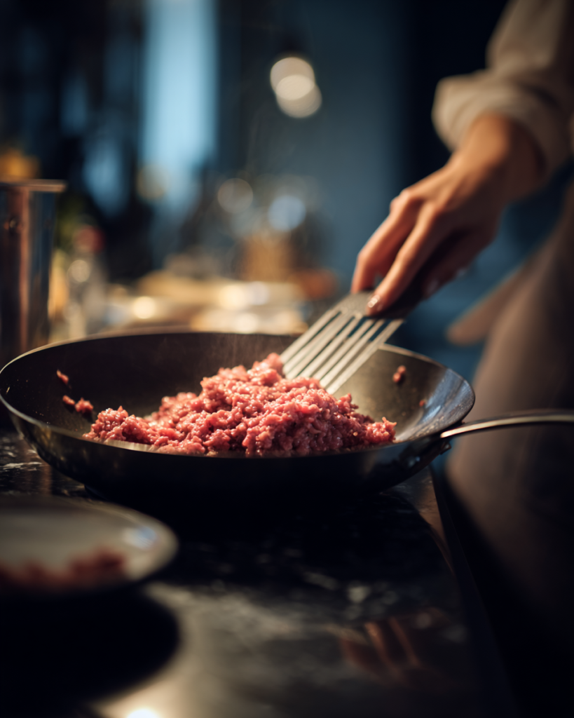 Season the beef with chili powder, cumin, smoked paprika, salt, and black pepper. Stir well to coat the meat evenly and cook for 1-2 minutes to let the spices bloom.