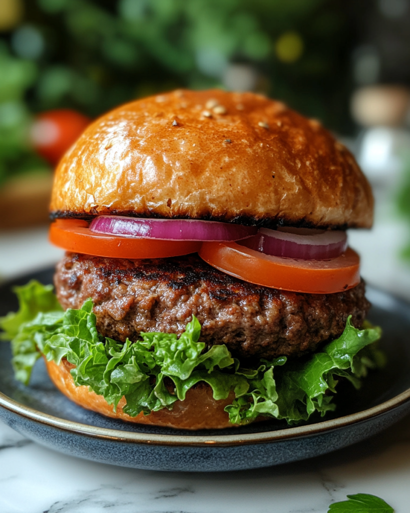 The patties are shaped and cooked until browned on the outside while staying tender inside. Instead of heavy additions, the meal is paired with vegetables, grains, or greens that bring freshness and contrast. A light seasoning blend enhances the beef without overpowering its natural taste.
