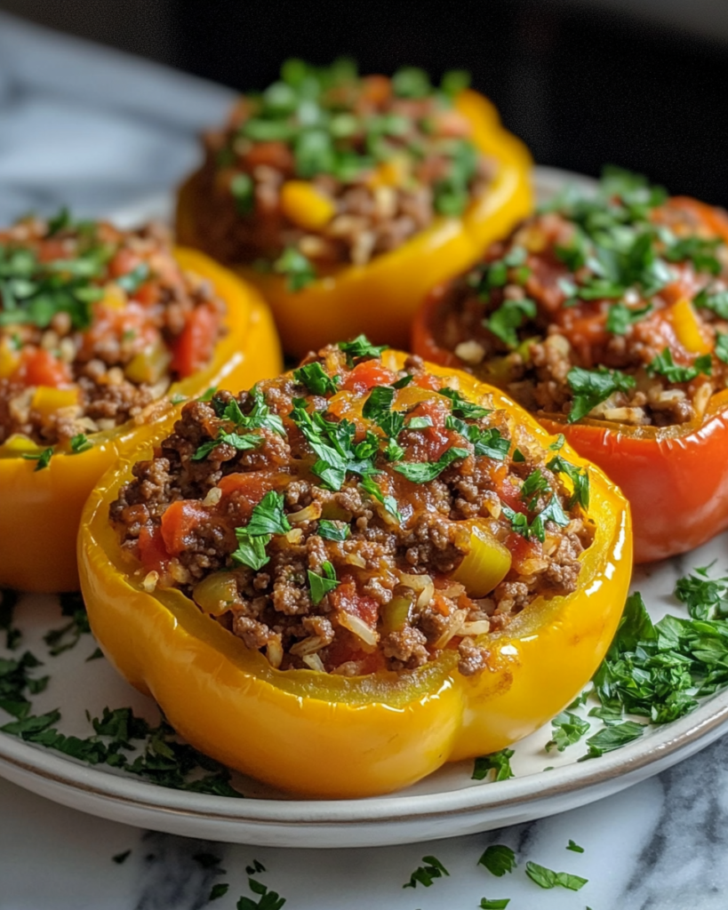Healthy Stuffed Peppers with Ground Beef is a balanced, satisfying dish that brings together tender bell peppers, seasoned beef, and wholesome grains in one complete meal. Each pepper is filled with a hearty mixture that cooks until everything is soft, flavorful, and perfectly blended.