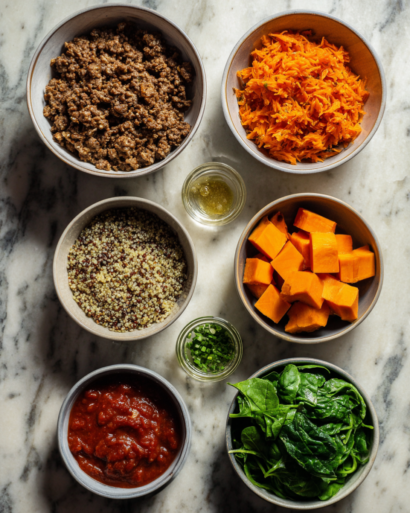 The foundation of Meal Prep Ground Beef Power Bowls begins with quality ground beef, which provides protein, flavor, and a satisfying texture. Choosing lean ground beef helps reduce excess grease while still delivering richness. Seasonings such as garlic, onion, paprika, and cumin bring depth and warmth, transforming the beef into a savory centerpiece.