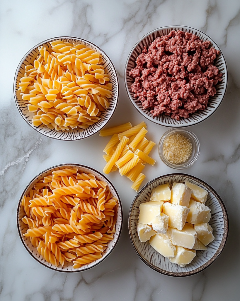 Carbohydrates such as pasta or thinly sliced potatoes help make the bake filling. Pasta absorbs the seasoned sauce, while potatoes provide a softer, layered texture. Either option works depending on preference, and both pair well with the beef.