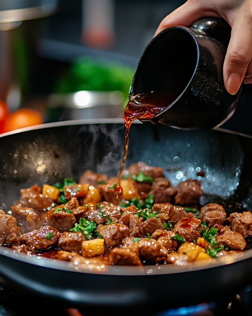 Soy sauce forms the backbone of the savory flavor, bringing saltiness and umami. Garlic and onion add aromatic richness, while a touch of brown sugar rounds out the flavor with mild sweetness. Beef broth deepens the sauce, making it more robust without overpowering the dish.