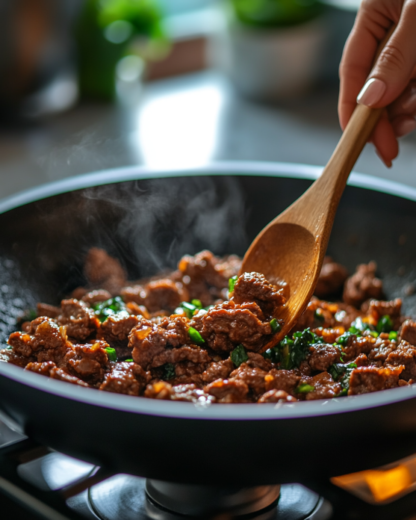 Taco beef skillet can be adjusted easily depending on taste and ingredients on hand. For a lighter version, ground turkey or ground chicken works well while still holding seasoning effectively. If a richer taste is preferred, using a higher fat beef adds more depth.